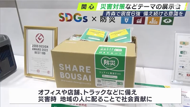 SBSテレビ様に「〈社会貢献型〉シェアする防災セット」の展示について取材いただきました。