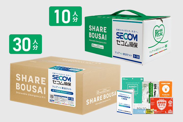全国の事業所の社用車にオリジナルデザインパッケージの「シェアする防災セット」を100セット導入。「防災をシェアする」考え方に共感いただき、災害時には各地域の従業員のみならず周囲の方々とも防災用品を分け合える体制づくりを目指しています。